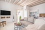 Also on this level is a spacious living room with a fully equipped open-plan kitchen and direct access to the private pool. The living area includes an indoor dining table and a lounge space with 4K television (Satellite channels and Netflix).