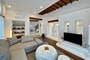 Each space is elegantly furnished, combining traditional Mykonian elements with contemporary design, creating a refined yet relaxed atmosphere throughout.