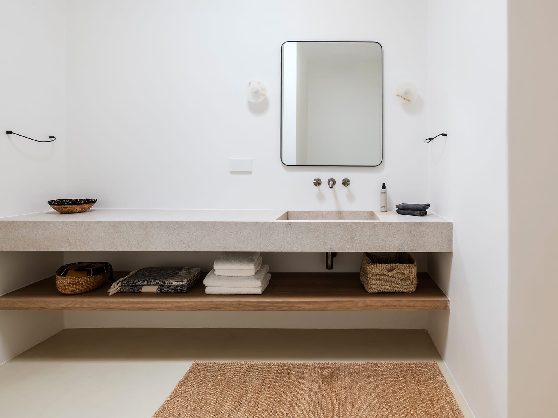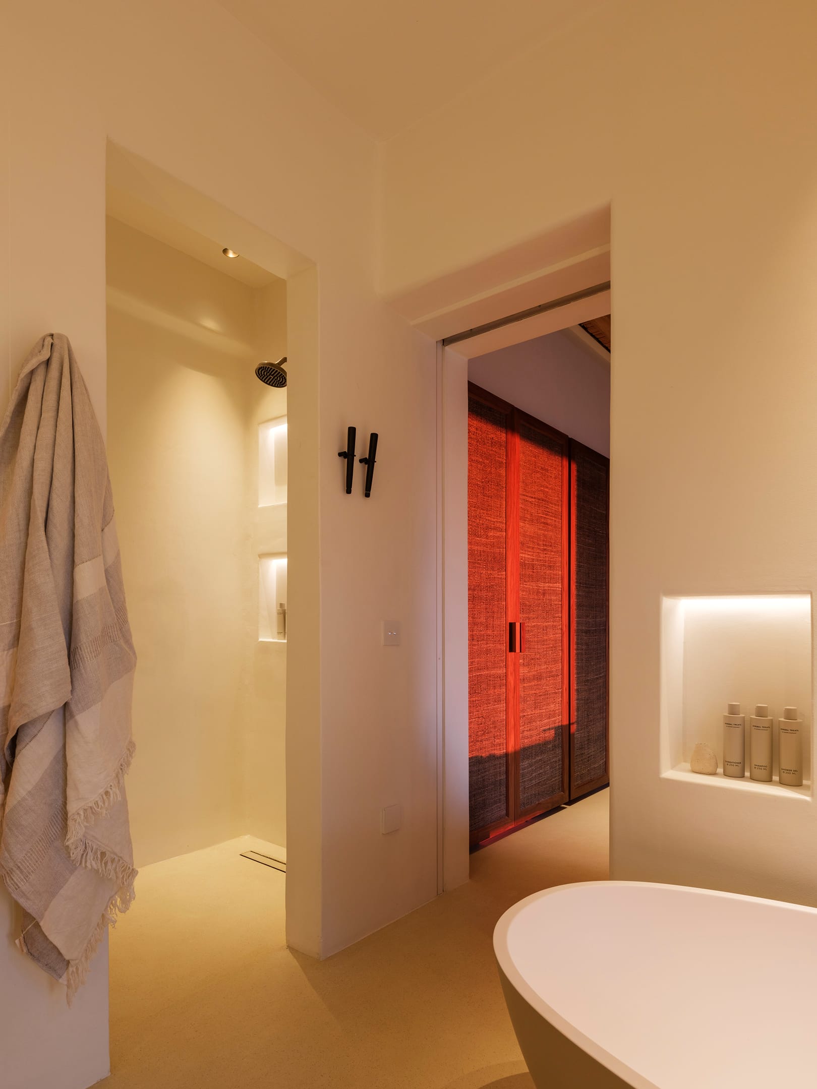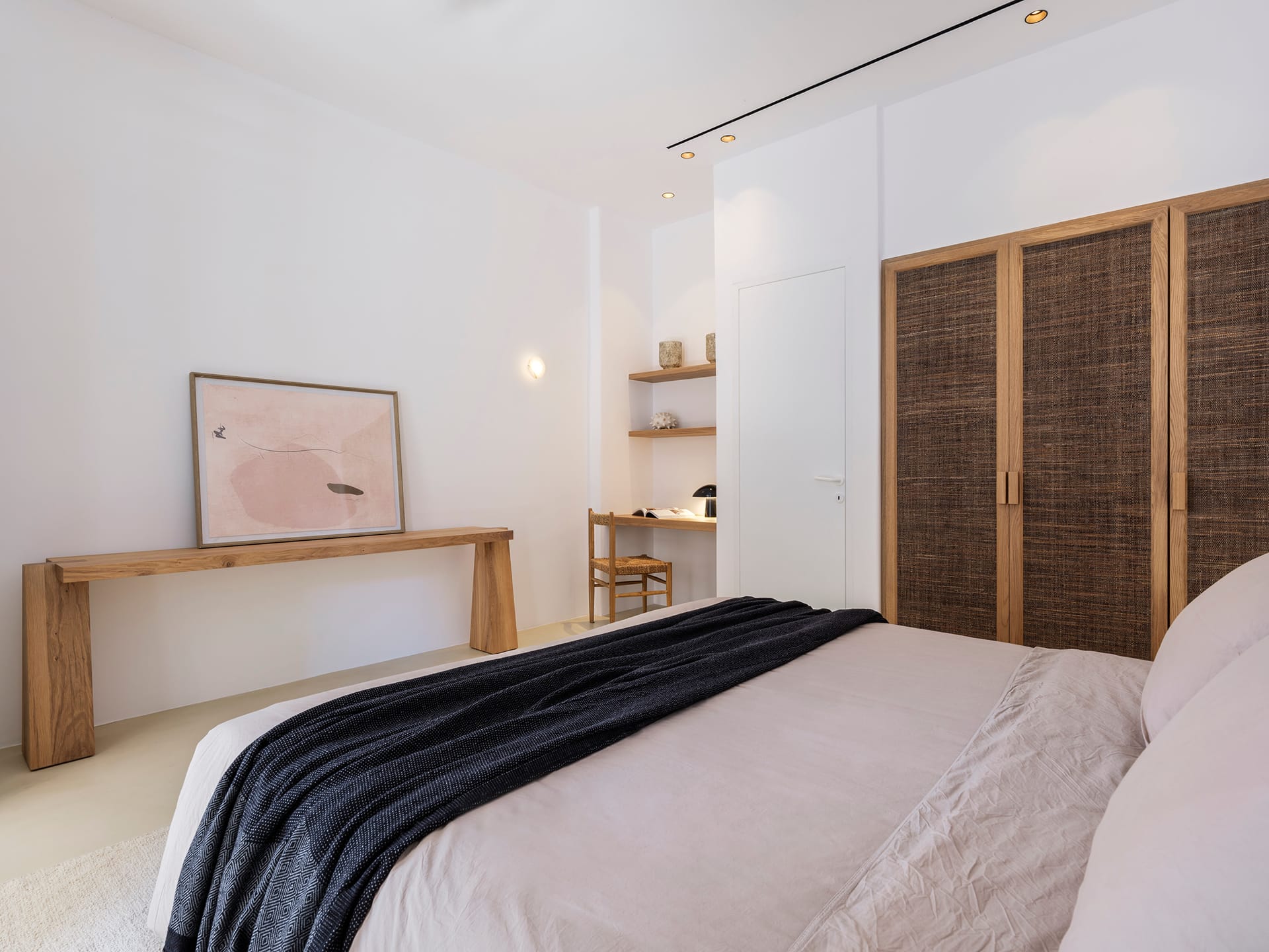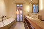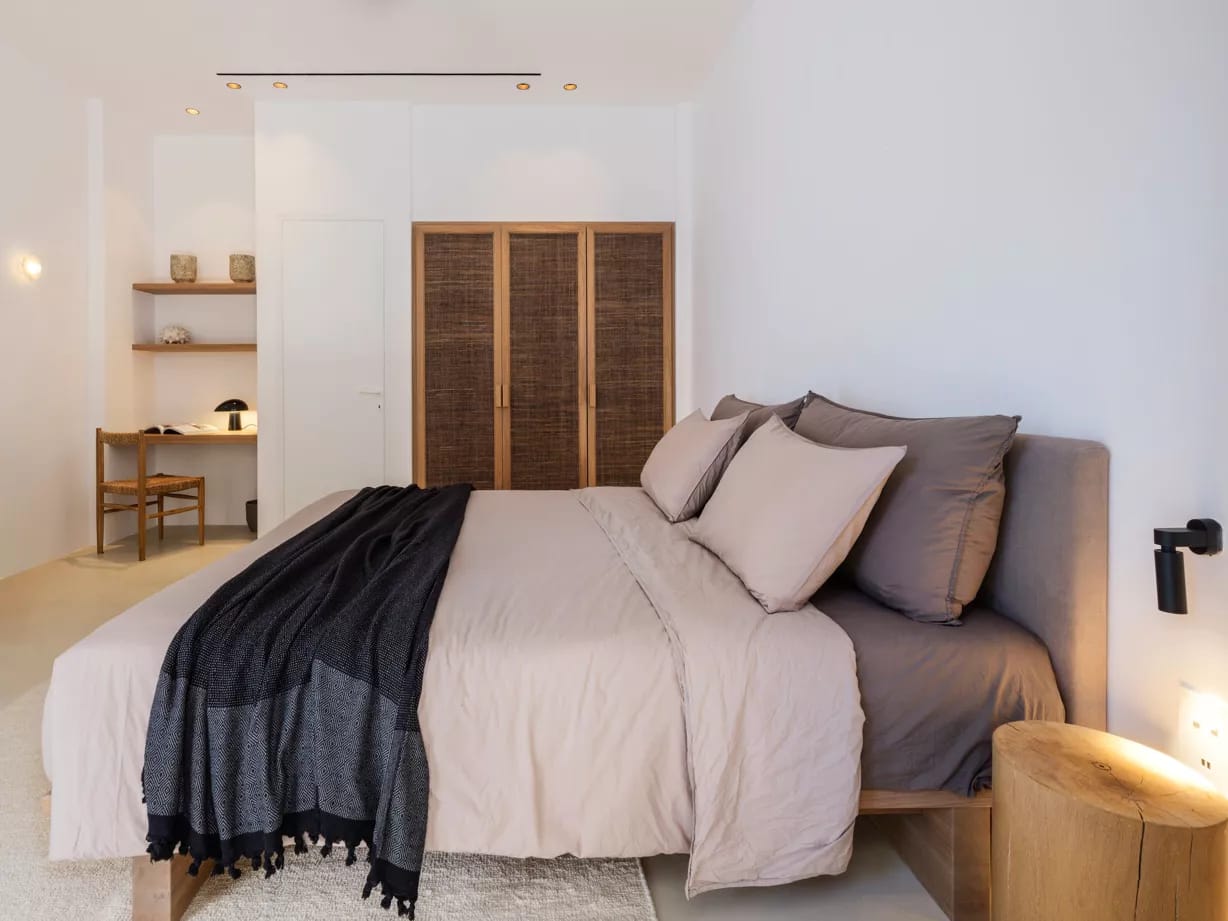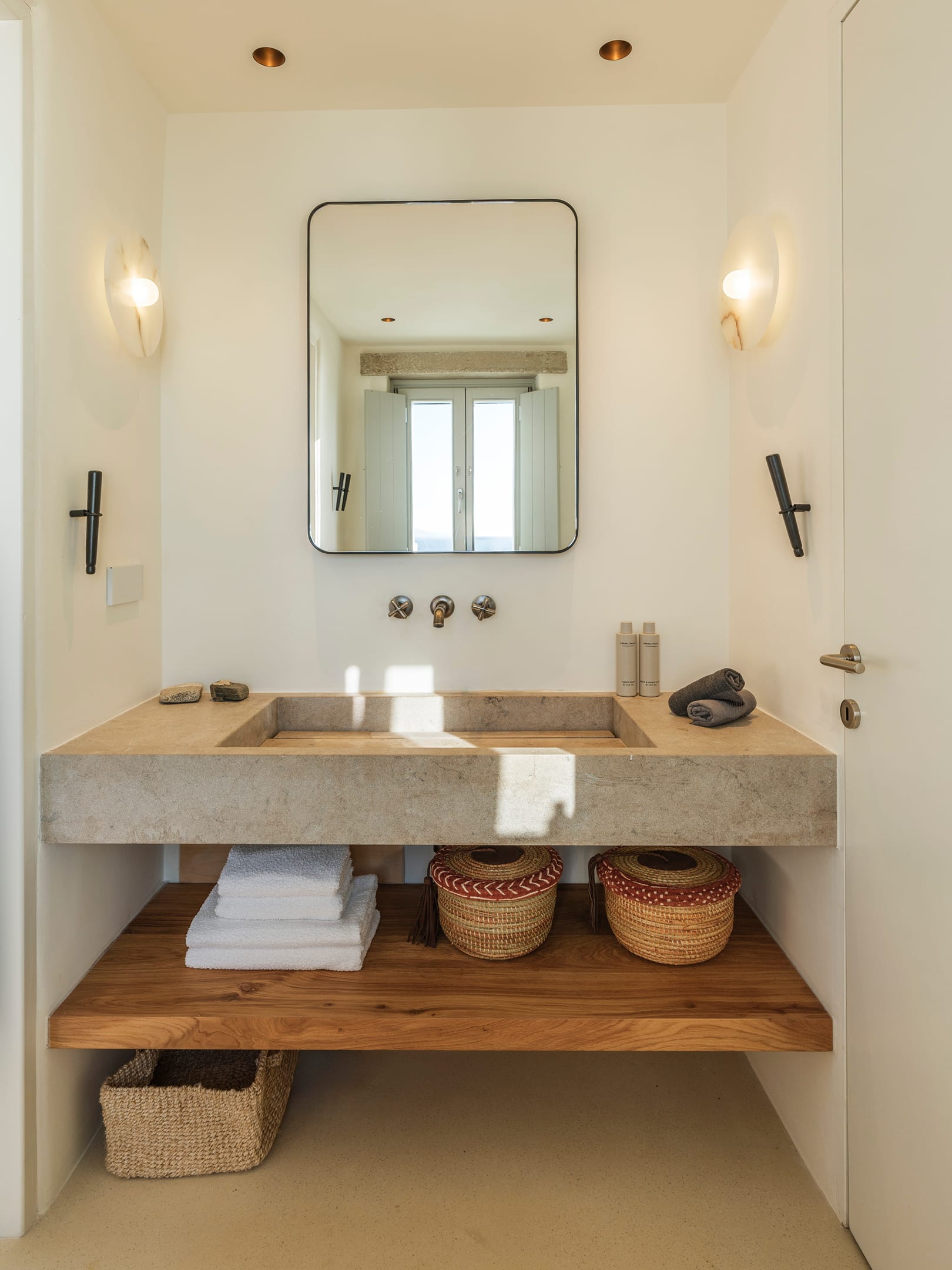 Designed with timeless Greek aesthetics, Villa Rosa blends natural materials, whitewashed lines, and bright, open living spaces. Spacious terraces, warm textures, and abundant natural light create a serene environment perfect for relaxation and alfresco living. At sunset, the villa becomes a sanctuary of calm, ideal for poolside lounging or outdoor dining with breathtaking Aegean views.