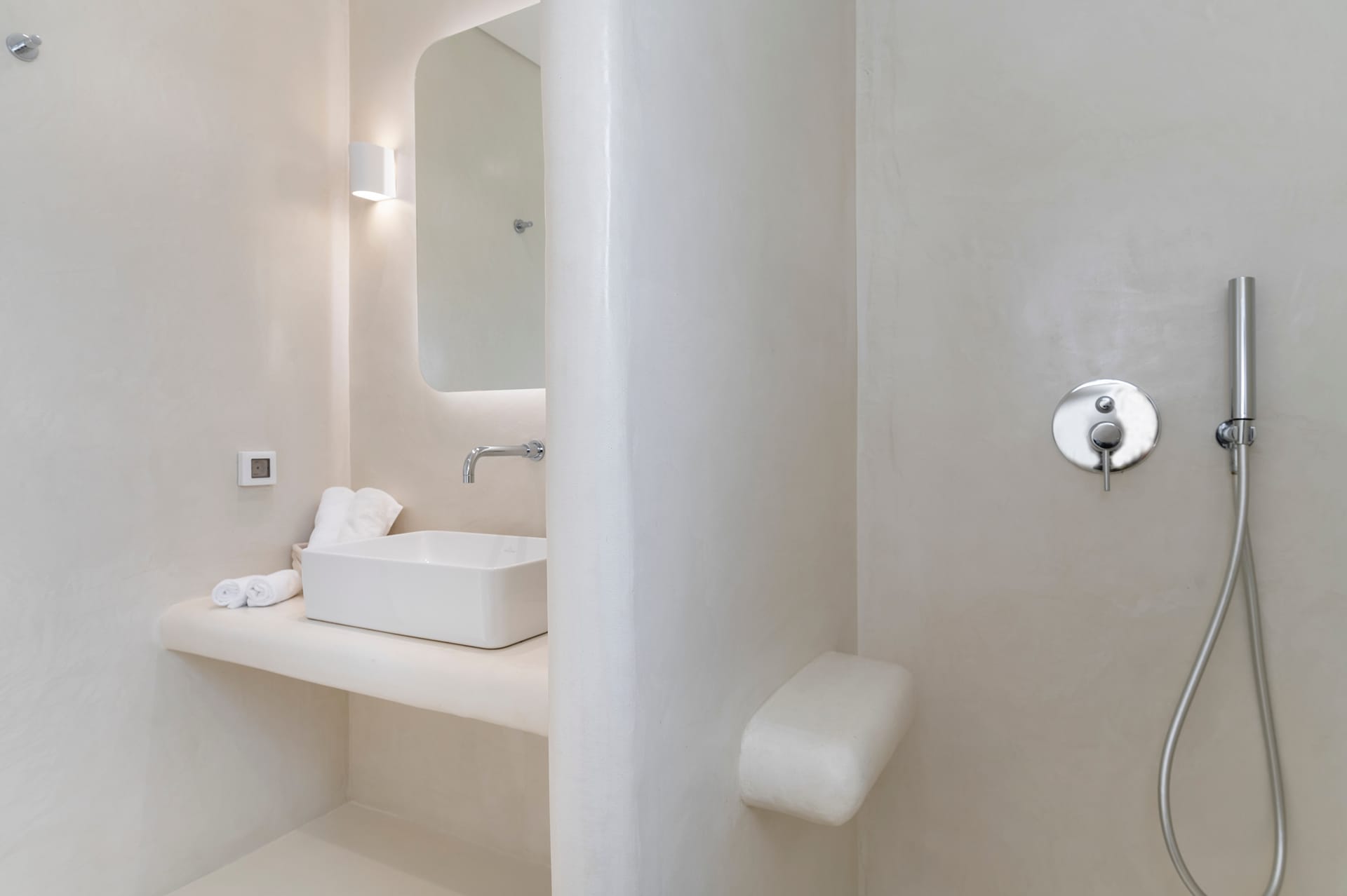 Sunbeds and outdoor shower.