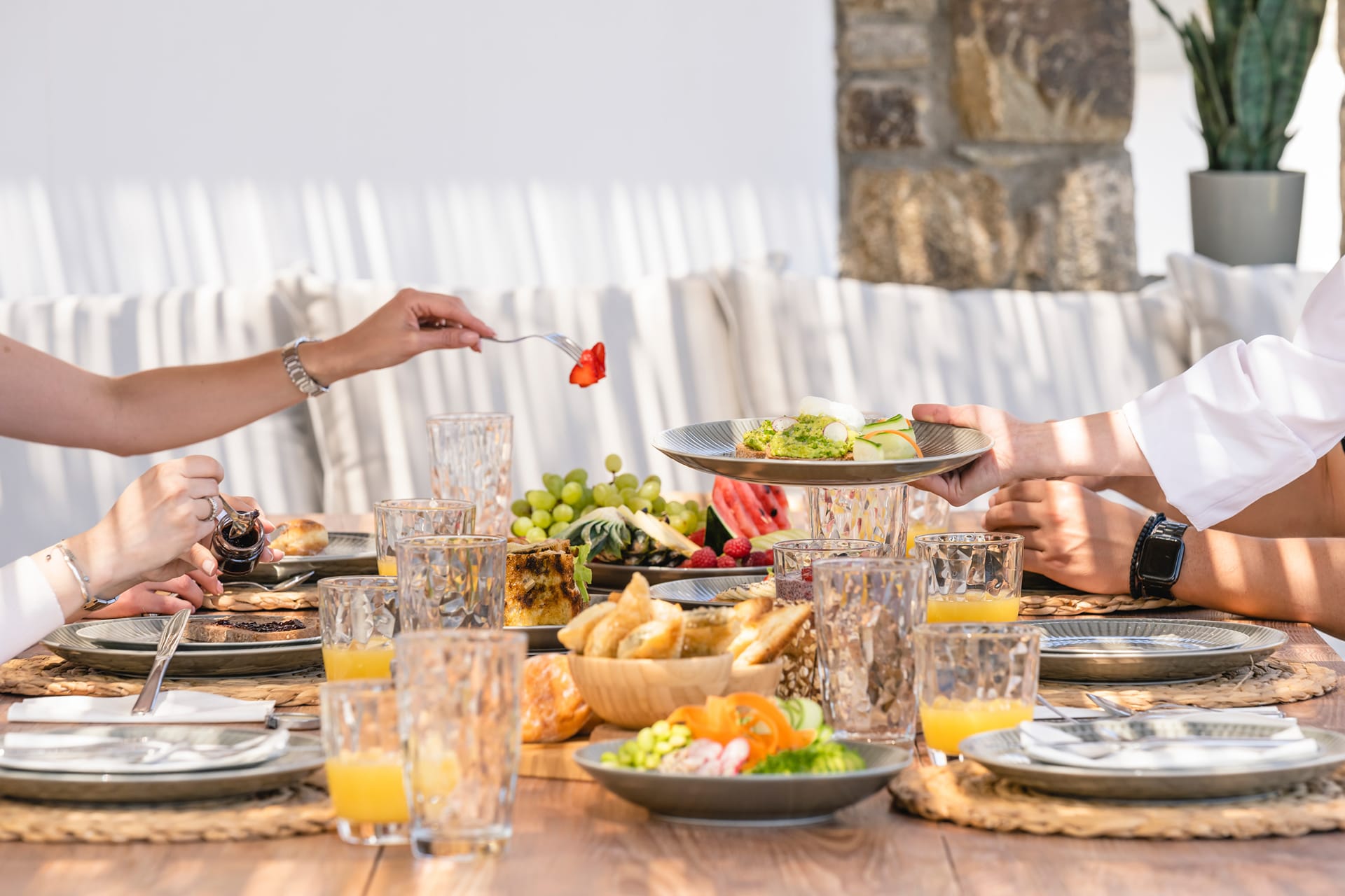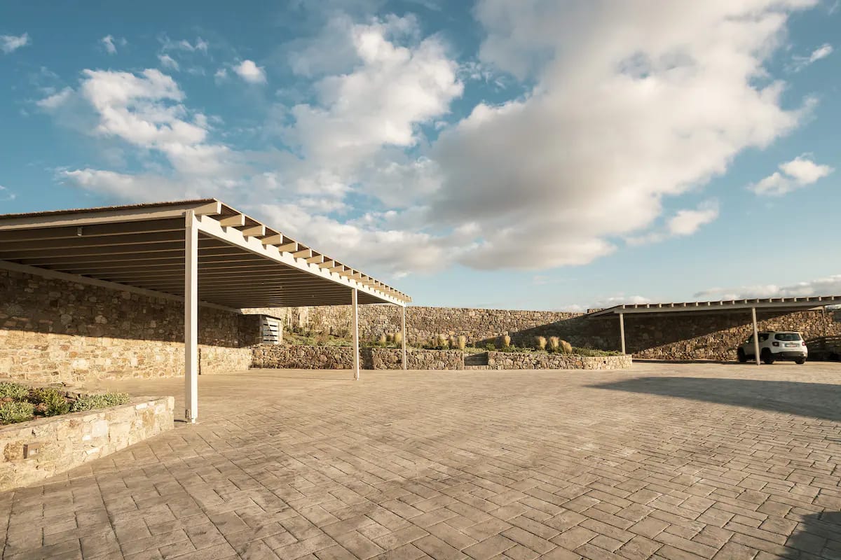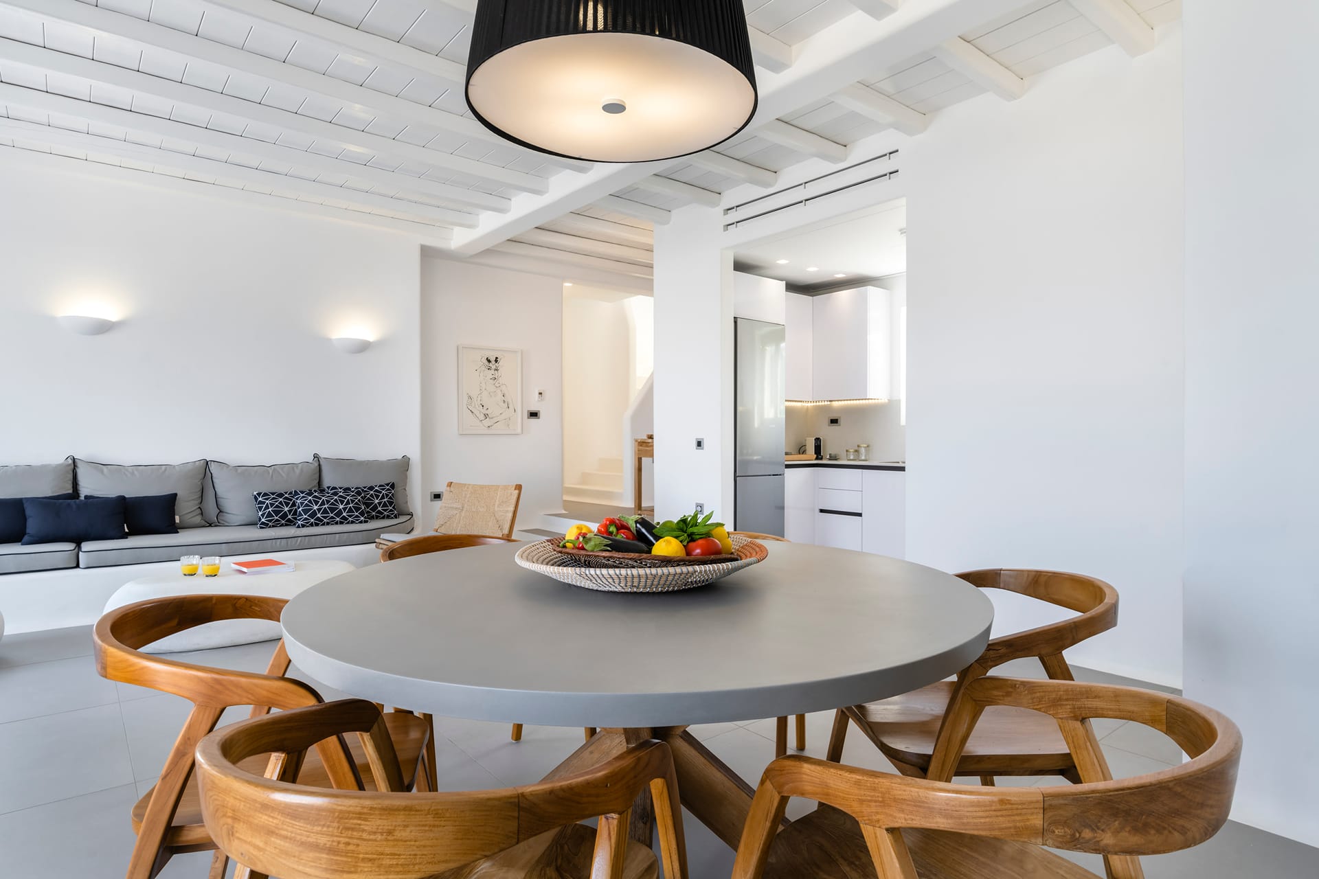 Wind-protected alfresco dining area for comfort even in typical Mykonos breezes