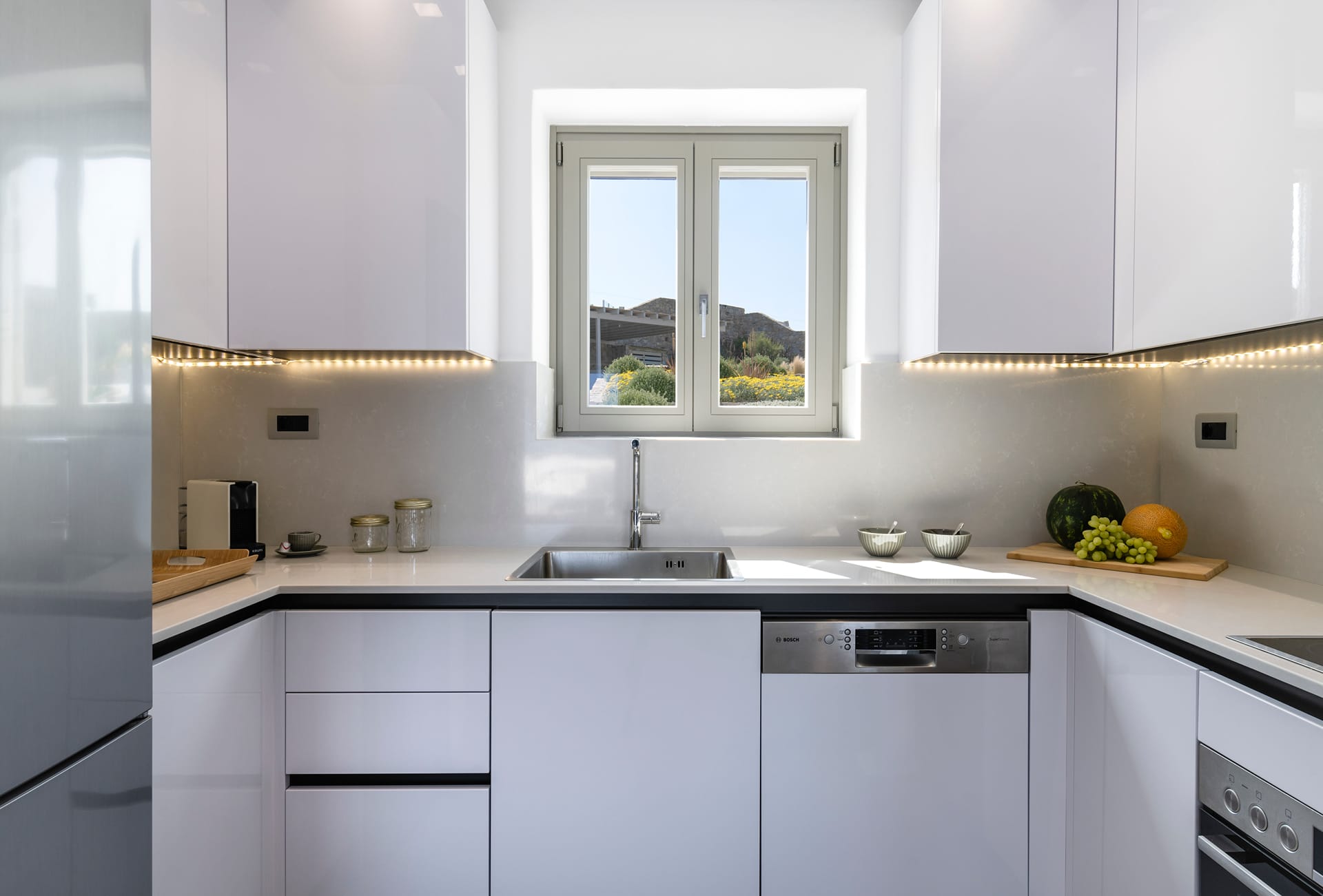 Although just steps from the sea, the villa offers privacy and tranquility, allowing guests to enjoy its luxurious outdoor spaces while taking in the mesmerizing views of the Aegean landscape.