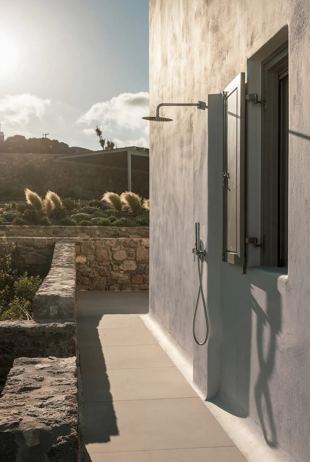 Sunbeds and outdoor shower