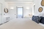 Master bedroom with queen-size bed (160x200), en-suite bathroom, and spacious balcony