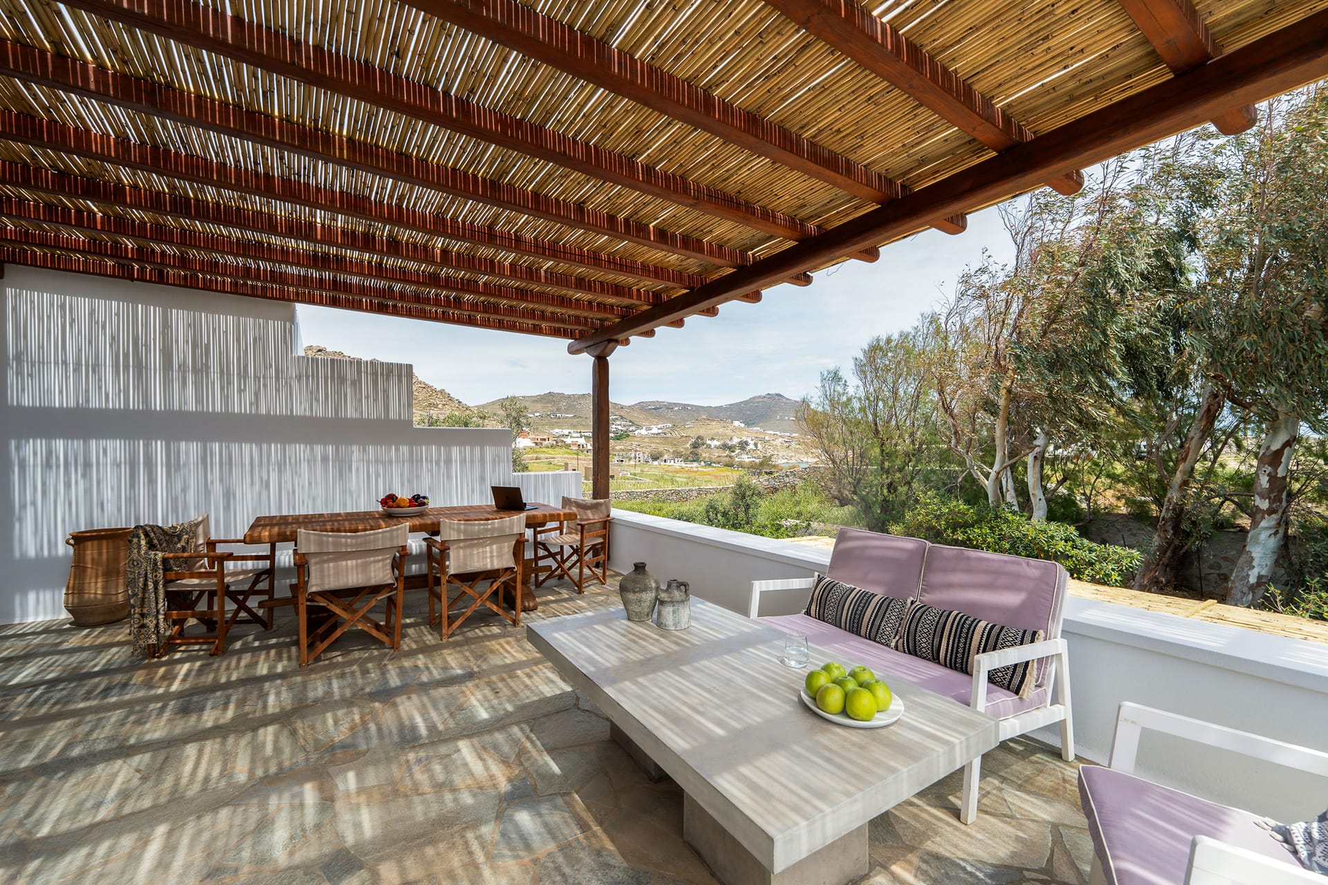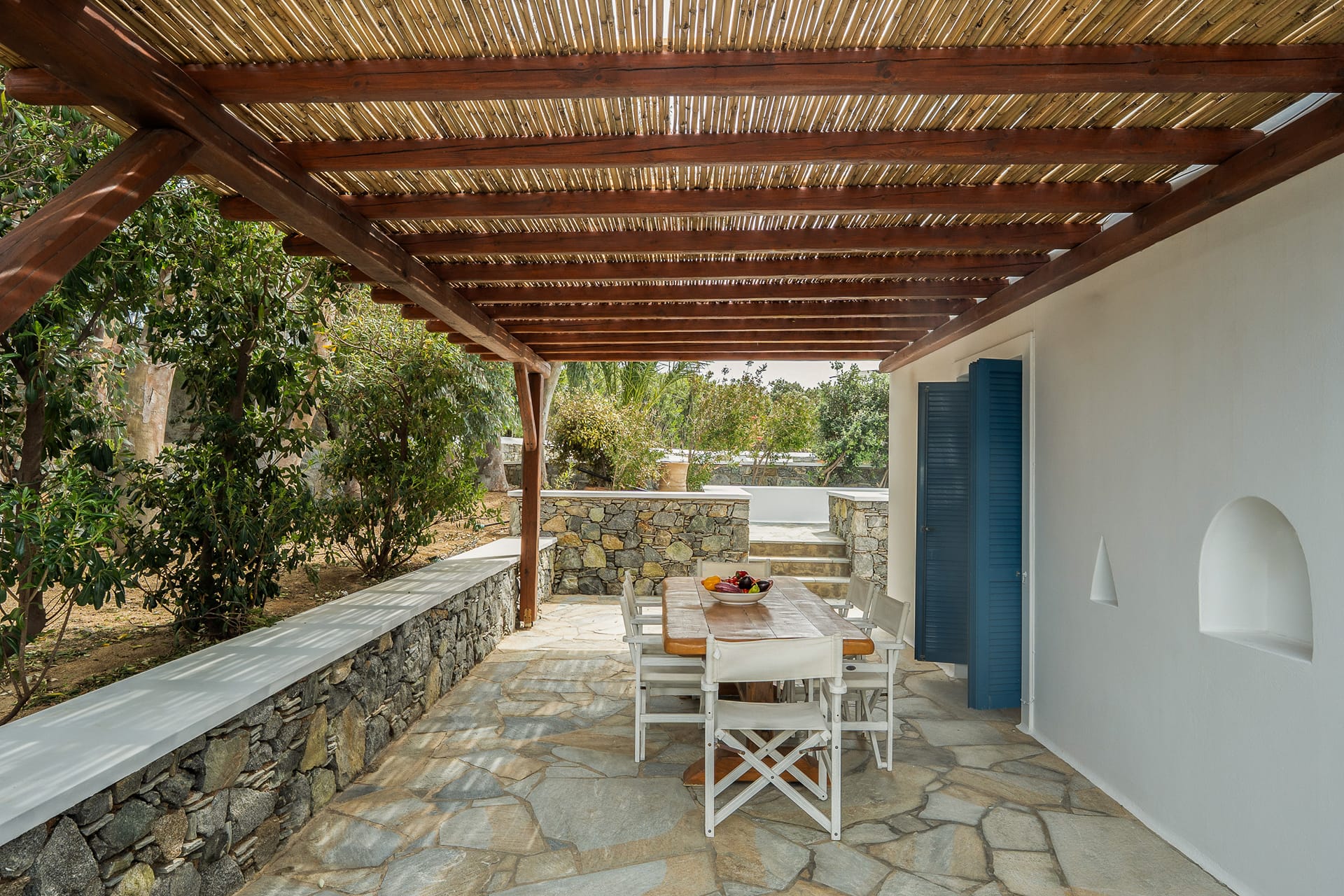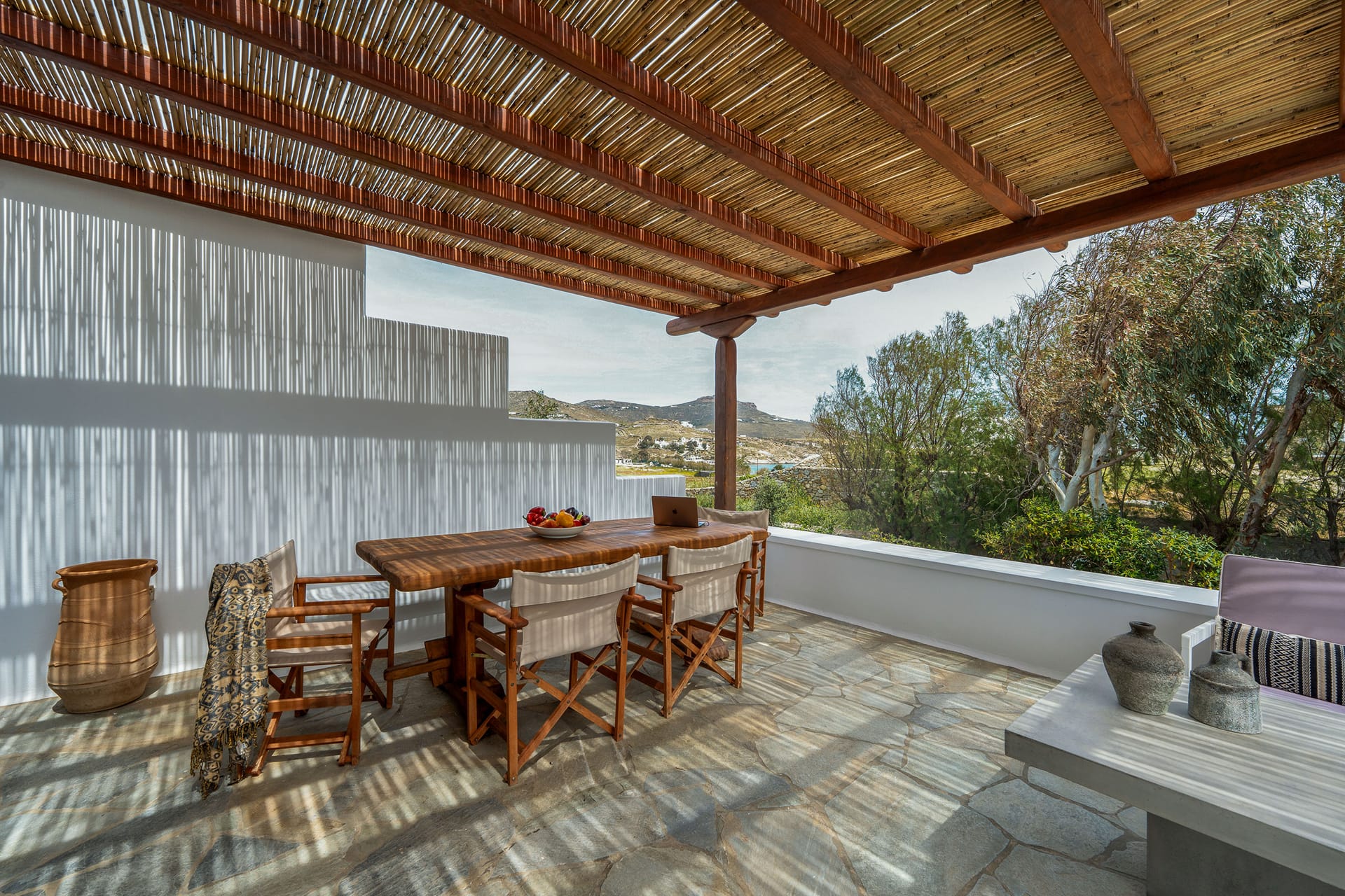Dining table under pergola