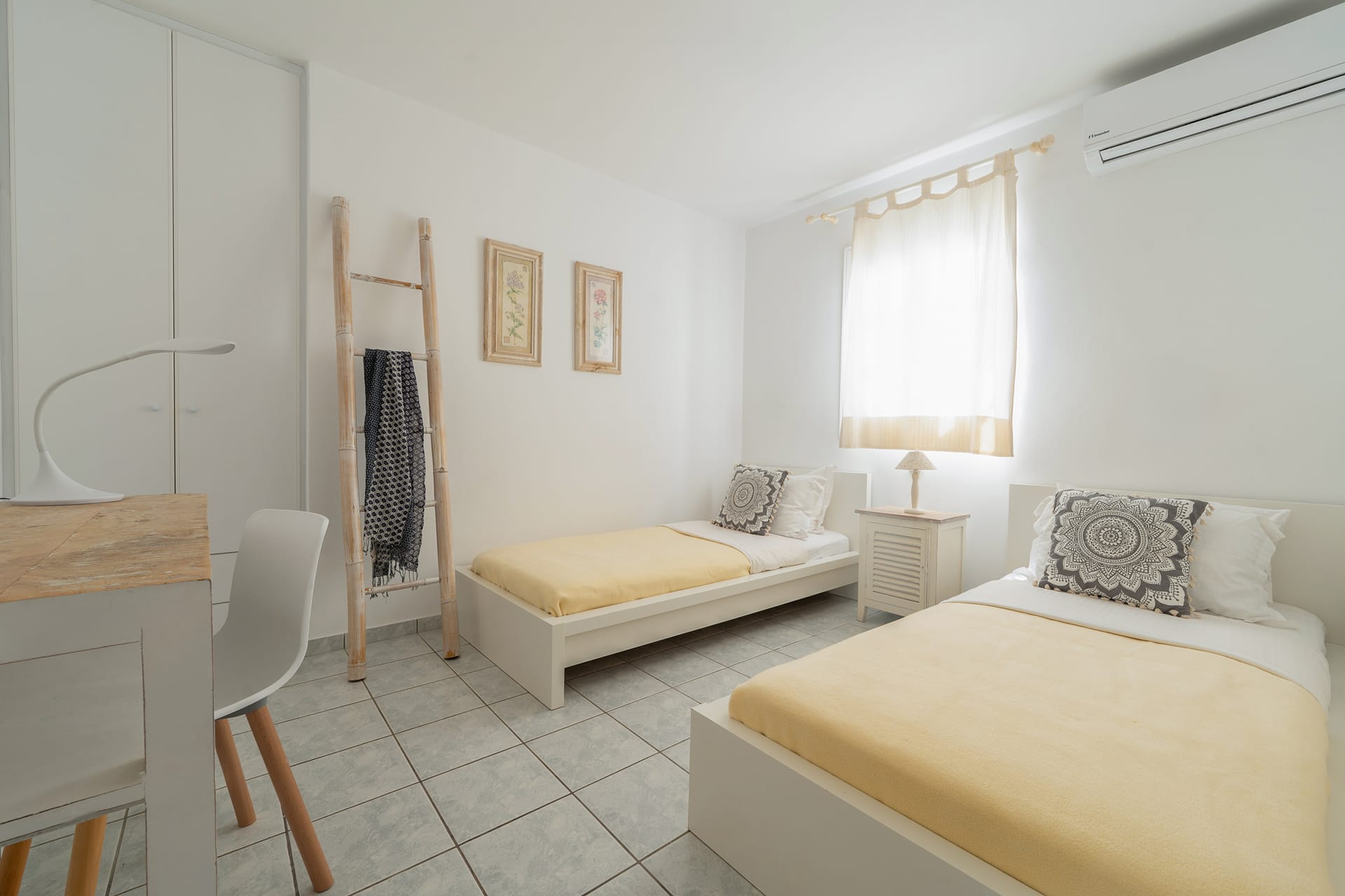 1 Bedroom with two single beds (can be joined into a double); AC