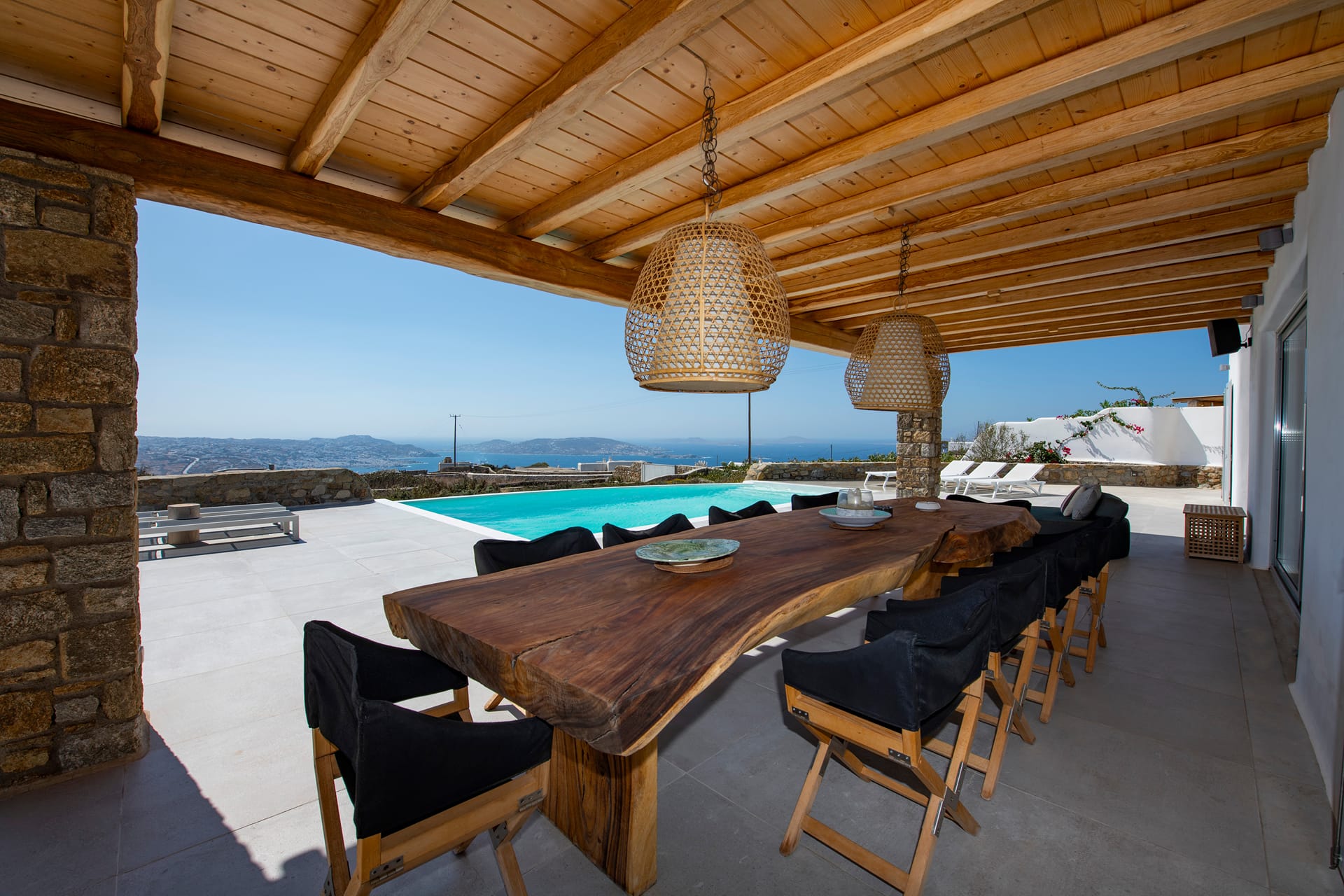 The villa’s separate units provide privacy for all guests, while the shared indoor and outdoor spaces including the uniquely shaped private pool allow everyone to relax and enjoy the stunning panoramic vistas together. Villa Lomas offers the perfect balance of style, comfort, and Mykonian charm.