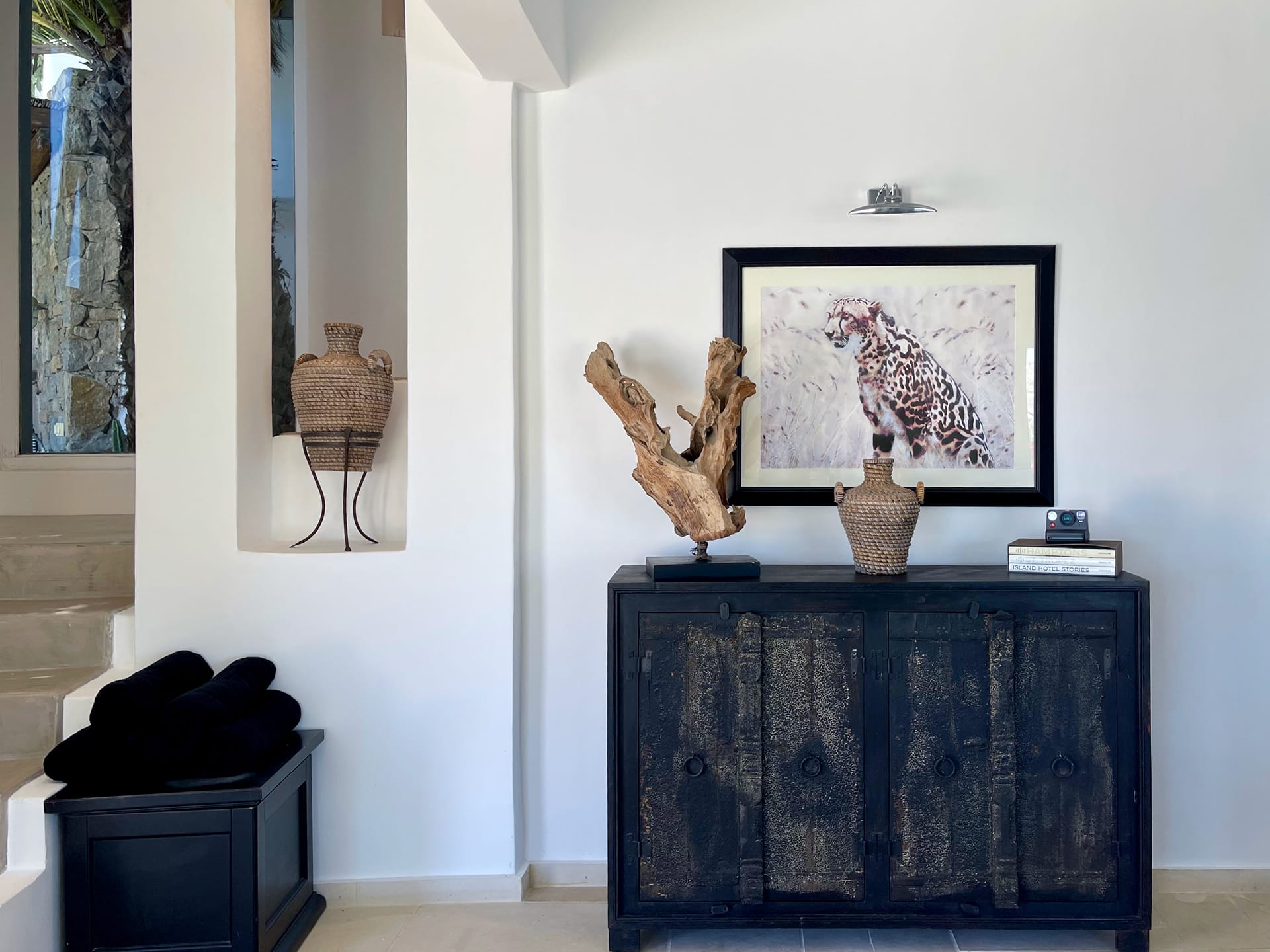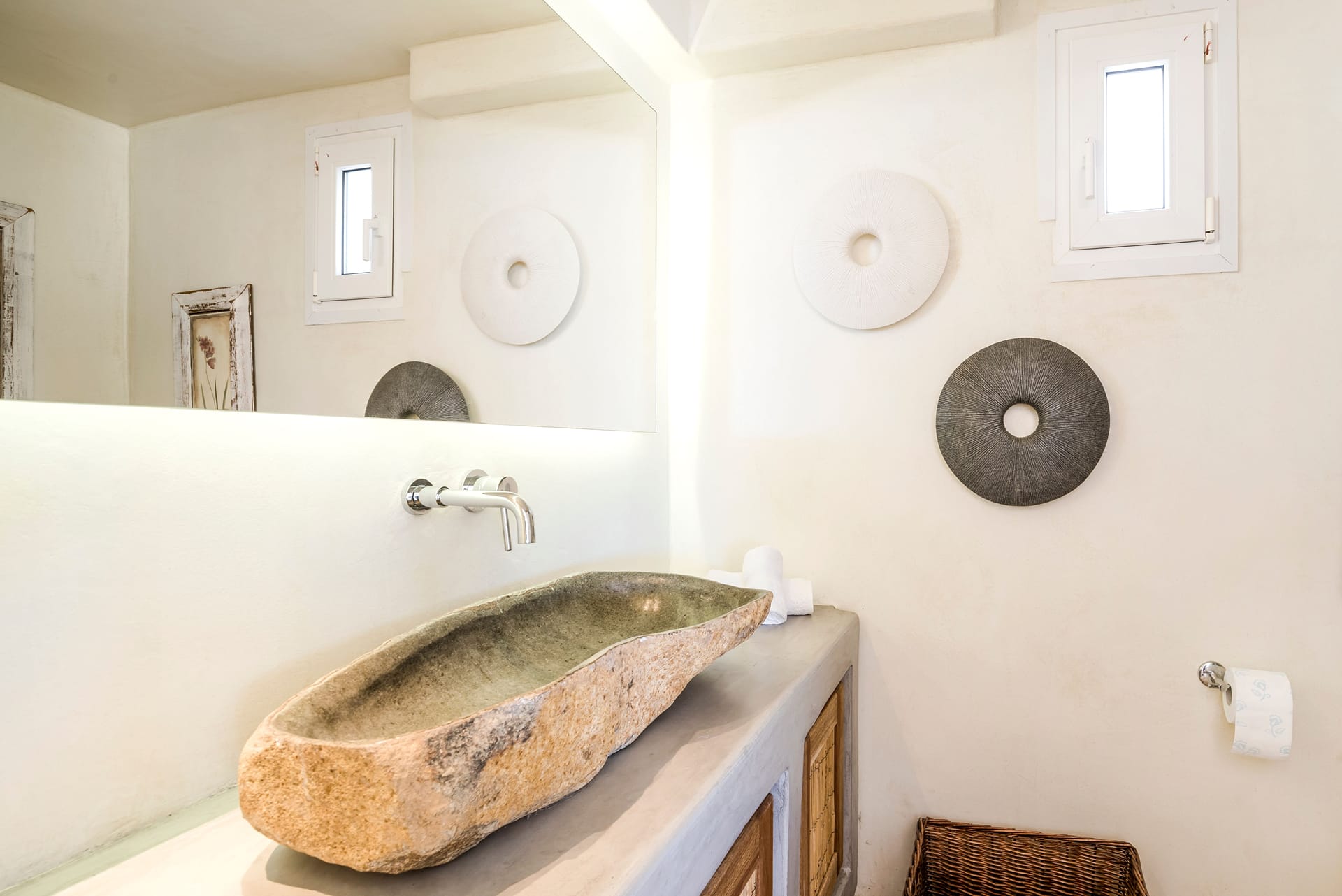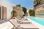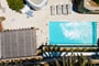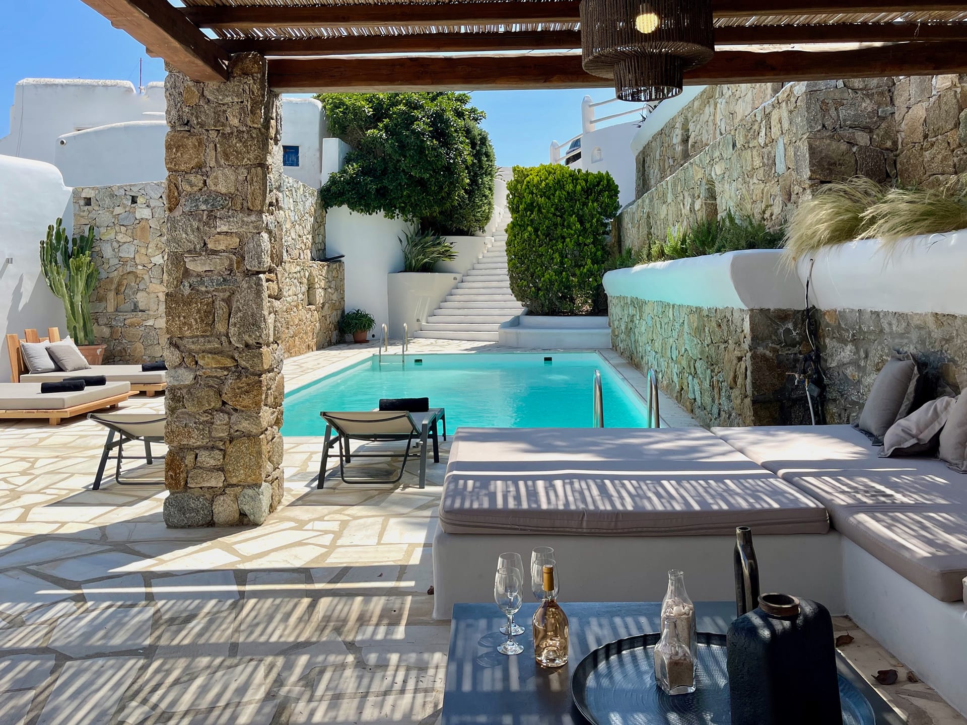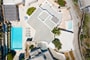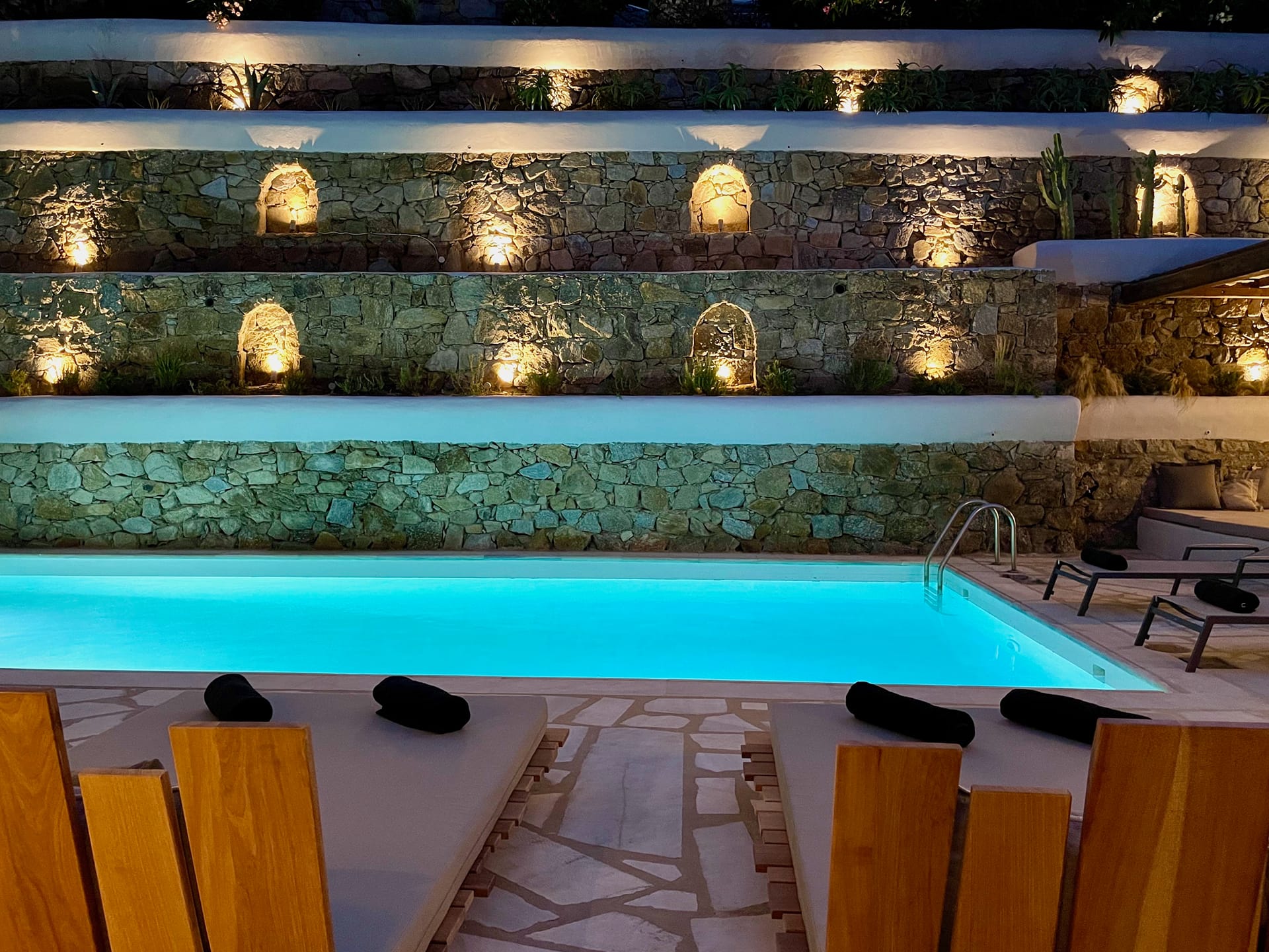 Guests can enjoy open-air living around the pool, with multiple lounging and dining areas under pergolas or beneath the starry sky. The villa is composed of a two-level main house plus two independent guest houses, accommodating up to 14 guests comfortably across seven en-suite bedrooms.