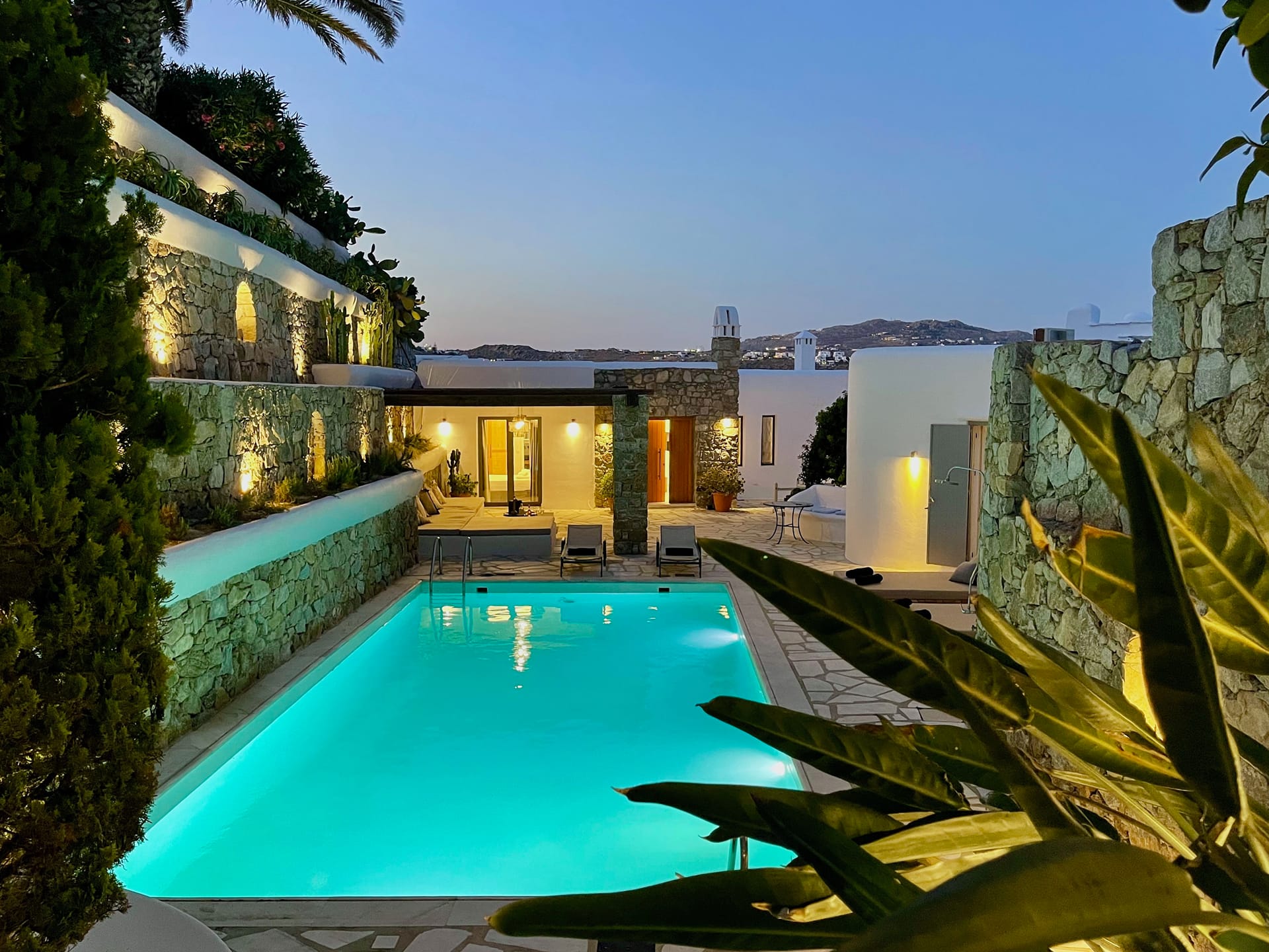 Psarou Hilside Villa is a unique Cycladic property offering 350 sqm of luxurious living space with private swimming pool and breathtaking views of the Aegean Sea. Combining sophistication with laid-back elegance, the villa provides ultimate privacy and tranquility while remaining just 5 km from Mykonos Town and a 10-minute drive to the renowned Psarou Beach.